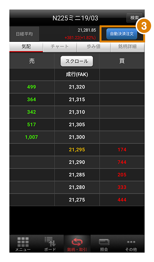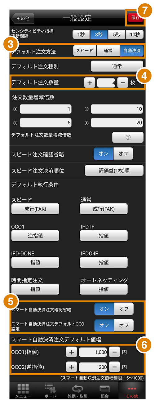 5.スマート自動決済注文確認省略と、スマート自動決済注文デフォルトOCO設定を「オン」にします。